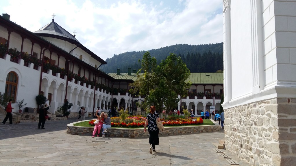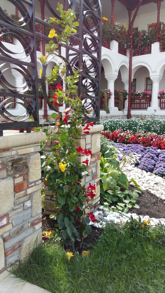 Am fost în 2017, prin septembrie (dacă-mi amintesc bine) și am făcut multe poze, fiindcă m-a impresionat tare mult cum era amenajată curtea mânăstirii, cu multe-multe flori. 🙂