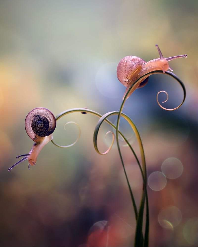 Nici eu n-am mai citit până acum o poezie cu doi autori, sau nu-mi aduc aminte, așa că am apreciat cu atât mai mult ideea. Recunoscându-mă -bineînțeles- în gândurile ei și pe iubitul meu într-ale lui. 🙂 Iar imaginea o aveam salvată în mobil mai de demult și acum, doar m-a surprins potrivirea acesteia cu versurile, fiindcă par a fi tot un el și-o ea, ce se îndepărtează unul de altul, dar nu prea 😀 …având viteza melcului.